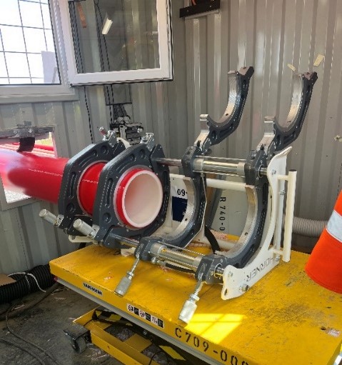 Die Teilnehmenden erhielten umfassende Informationen zur unterirdischen Verlegung der Kabeltrassen, besichtigten die eigens eingerichteten Kunststoffschweißanlagen für die Leerrohre und konnten sich ein Bild von den enormen Dimensionen der Bauarbeiten machen.