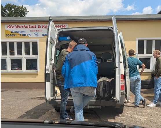 Nach einer Stärkung sollte es direkt weiter zur Gedenkstätte Deutsche Teilung Marienborn am ehemaligen innerdeutschen Grenzübergang Marienborn gehen. Eine unvorhergesehene Bulli-Panne führte allerdings dazu, dass die bis dahin perfekte Zeitplanung ins Wanken geriet, doch die Flexibilität und Souveränität des Betreuers sowie die kurzfristig hilfsbereite Kfz-Werkstatt trugen dazu bei, dass die Tagesplanung nicht weiter abgeändert werden musste. Nach einem kurzen Zwischenstopp bei der ortsansässigen Werkstatt konnte die Fahrt schnell fortgesetzt werden, sodass auch der kulturelle Bildungsaspekt nicht zu kurz kam.
