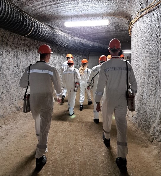 Der dritte und letzte Exkursionstag führte die Teilnehmenden tief unter die Erde, nämlich zum ehemaligen Salzbergwerk und heutigen Atommüll-Endlager Morsleben. Nach einer aufwendigen Sicherheitskontrolle, die dem Standard eines Atomkraftwerks entsprach, ging es per Förderkorb rund 400 Meter in die Tiefe.