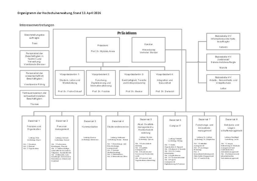 Wir garantieren eine rechtmäßige Gestaltung und Erledigung der Hochschulaufgaben. Dabei agieren wir verlässlich im Sinne der Gleichbehandlung. Der treuhänderische Umgang mit öffentlichen Ressourcen ist für uns selbstverständlich.
