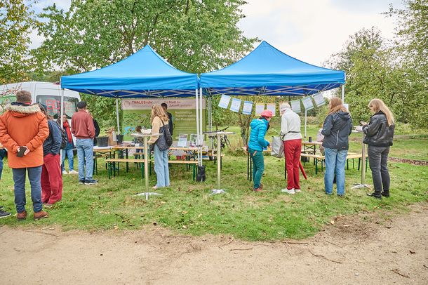 Am 26. September 2025 fand auf der Streuobstwiese Holper Heide in Herne Horsthausen das Apfelfest statt, an dem das Projekt mit einem eigenen Informations- und Umfragestand vertreten war. Die Veranstaltung zog zahlreiche Familien und Interessierte an und bot einen geeigneten Rahmen, um in den direkten Austausch mit den Besuchenden zu treten. Am Stand des Transformationslabors HSBO-Herne konnten die Besucher*innen im Rahmen einer Umfrage zu Engagement und Begegnung in Herne ihre Perspektiven, Erfahrungen und Anregungen einbringen. Ergänzend wurde eine interaktive Abstimmung zu bevorzugten Dialogformaten durchgeführt. Diese ist weiterhin online verfügbar und kann unter Protected link to hs-gesundheit.de noch bis Dezember ausgefüllt werden. Darüber hinaus präsentierte die Hochschule Bochum exemplarische Aktivitäten aus den Projekten „Urbane Ökologie & Gemeinschaft“ und „Regionaler Klimabund“, die Teil des Transferverbunds THALESruhr sind. Mit dem Apfelfest wurde im Rahmen des Projekts Transformationslabor HSBO-Herne das erste Dialogformat für Herne eröffnet. Das große Interesse von ca. 50 Teilnehmenden am Stand verdeutlicht die Relevanz des Themas Partizipation für die Stadtgesellschaft in Herne und unterstreicht das Potenzial gemeinschaftsorientierter Transformationsprozesse.