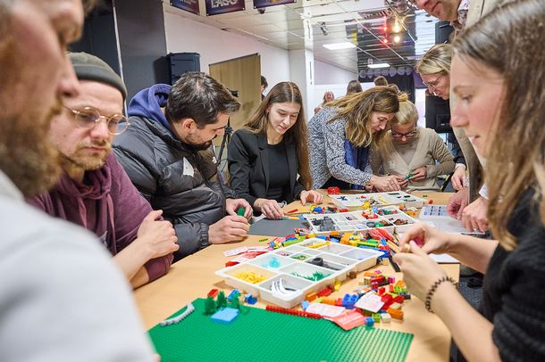 Das dritte dialogische Format des Projekts “Transformationslabor HSBO & Stadt Herne“ mit der Stadtgesellschaft fand am 5. November erfolgreich mit 27 interessierten Einwohnenden aus ganz Herne in dem Think Tank des Applied Excellence Department (AED) statt. Das Projekt wird vom Stifterverband gefördert und erprobt anhand des Themas "Fit und Stark im Alltag - Älterwerden in Herne" verschiedene Partizipationsprozesse. Nun wurden aus der gesamten Bevölkerung Hernes 600 Menschen ab 16 Jahren zufällig ausgewählt und zu diesem Format persönlich eingeladen. Im Rahmen des Gesamtprojekts ist dies der erste Testlauf eines solchen Dialogs mit Herner*innen. Es entstand eine sehr durchmischte Gruppe mit unterschiedlicher Interessenslage, die sich in diesem Format gemeinsam über ihre und die Wünsche ihrer Mitmenschen austauschen konnten. Nach einer kurzen Vorstellung des Gesamtprojekts starteten die Teilnehmenden direkt in den Workshop und bauten unter großem Interesse mit Hilfe von Lego Bausteinen zahlreiche Modelle, die ihre Empfehlungen im Bezug zum Thema “Fit und Stark im Alltag - Älterwerden in Herne“ zeigen. In der zweiten Aufgabe konnten sich die Beteiligten in verschiedene Perspektiven anderer Mitbürger*innen versetzen und deren Alltagsschwierigkeiten erkennen. Abschließend wurden die gesammelten Ideen und Impulse des Tages kurz resümiert. Die Teilnehmenden bekamen die Möglichkeit sich zu fragen, was jeder Einzelne bereits heute in seinem unmittelbaren Umfeld für eine bessere Stadt Herne beitragen kann. Die vielen Impulse dieses Abends wurden gesammelt und für das letzte Format, ein Dialog mit politischen Akteuren, aufbereitet. Die gesammelten Erkenntnisse werden in eine Handlungsempfehlung für die kommunale Praxis einfließen.
