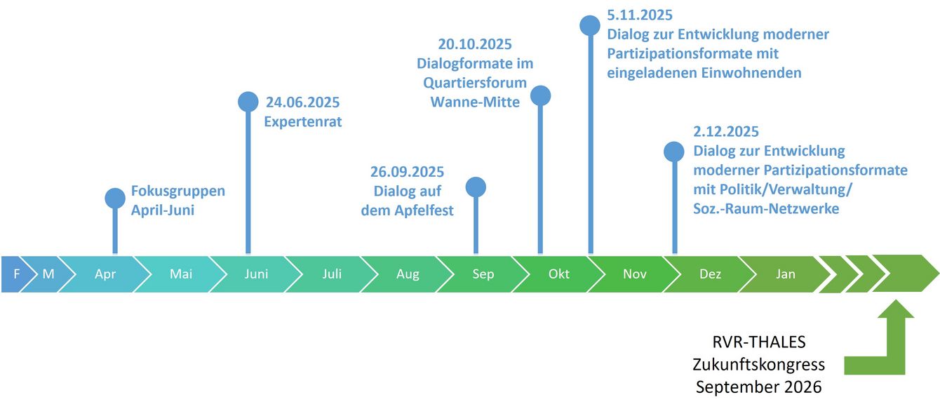 Im Zuge des Projekts werden Zukunftsräte als Beteiligungsformat getestet. Sie bringen wissenschaftliche Perspektiven der Hochschule mit praktischen Erfahrungen und Bedürfnissen aus der Stadtgesellschaft zusammen. Inhaltich befassen sich die Zukunftsräte mit dem Thema: Fit und stark im Alltag - Älterwerden in Herne. Die Ergebnisse setzen Impulse für eine nachhaltige kommunale Gesundheitsstrategie. Gleichzeitig fließen die Erfahrungen mit den unterschiedlichen Beteiligungsformaten in die Weiterentwicklung der Bürgerbeteiligung in Herne ein. Langfristig soll Partizipation zur Stadtgesundheit in Herne verstetigt werden.