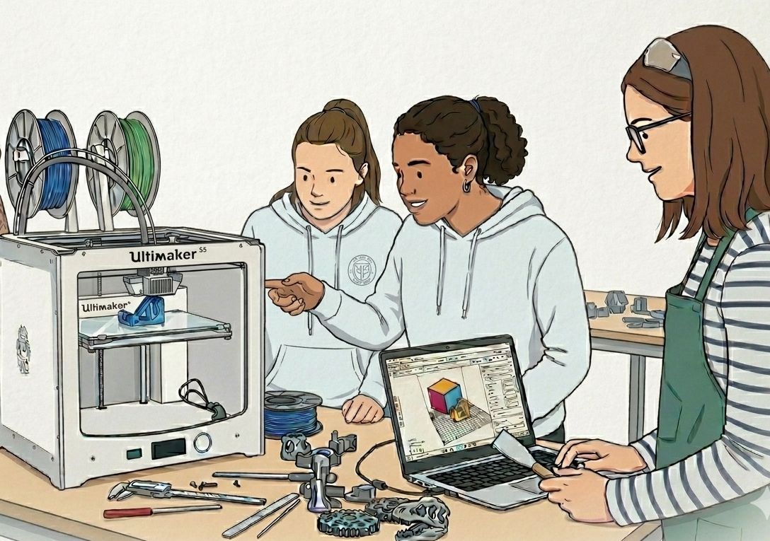 Beim gemeinsamen Workshop mit der Girls' Academy lernt ihr die Grundlagen des 3D-Drucks kennen. Ihr könnt euch selbst mit einem einfachen CAD-Programm am 3D-Drucker ausprobieren und nach dem Workshop euer erstes eigenes Modell - einen Schlüsselhänger - mitnehmen.