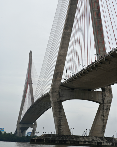 Die Exkursionsteilnehmer*innen lernten auf ihrer Reise beeindruckende Bauten wie den 265,5 m hohen Bitexco Financial Tower kennen, der einer ungeöffneten Lotosknospe nachempfunden ist und dessen riesige auskragende Helikopterlandeplattform auf der 52. Etage beeindruckt. Vom „Landmark 81“, der die ihm benachbarten Hochhäuser, um das Doppelte zu überragen scheint und mit 461 m das größte Gebäude Vietnams ist, hatten die Studierenden einen fantastischen Blick auf die Altstadt von Ho-Chi-Minh-Stadt und die neuen Stadtteile der pulsierenden Metropole.