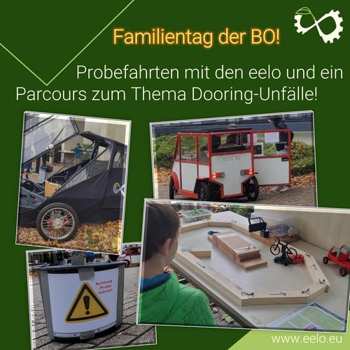 Neben der Präsentation unserer Fahrzeuge und den beliebten Probefahrten haben wir einen Parcours zum Thema Dooring Unfälle aufgebaut, um Kinder für dieses sicherheitskritische Thema zu sensibilisieren. Das hat noch nicht ganz perfekt funktioniert, die Kinder fanden es trotzdem lustig. Den Parcours wollen wir auf jeden Fall verfeinern, wieder ein Thema für ein Entwicklungsprojekt!