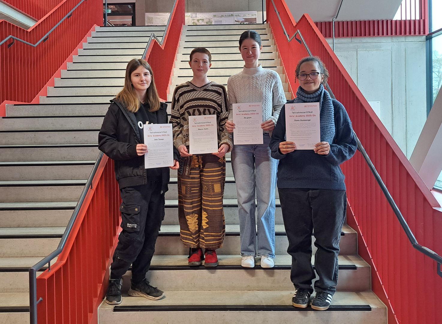 Die nächste Girls‘ Academy startet in den Herbstferien 2026. Vorher wird es zwei unverbindliche, offene Kennenlernabende geben, zu denen sich interessierte Oberstufenschülerinnen schon jetzt anmelden können. Wer sich unsicher ist, ob das Angebot passt, kann Freundinnen mitbringen und sich erstmal nur für einen der Kennenlernabende anmelden. Oder man hört auf eine Schülerin, die gerne anderen noch mitgeben möchte, dass man „mitmachen sollte – auch, wenn man niemanden kennt“.