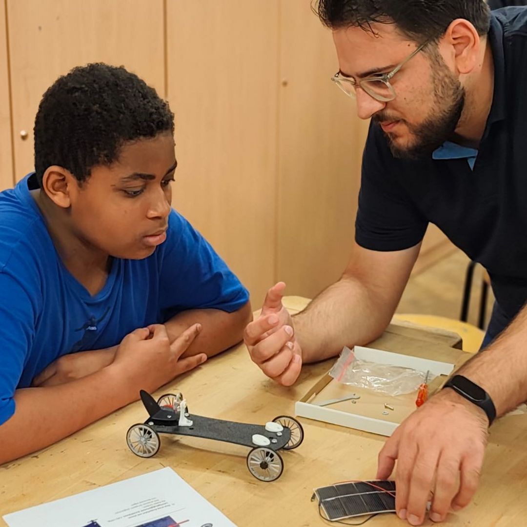 Außerdem konnte eine weitere Schüler*innengruppe mit dem Talentmobil der Hochschule kleine Solarautos bauen. Mit viel Spaß und Teamarbeit fanden die Jugendlichen heraus, wie Sonnenenergie in Bewegung verwandelt werden kann. Die handwerkliche Arbeit kam bei den Schüler*innen gut an, viele hatten Spaß daran, die Bauteile zusammenzusetzen und die Autos zum Laufen zu bringen. Louisa Waasmann, eine der Workshop-Leiterinnen, zog ein positives Fazit: „Die Schüler*innen haben gut mitgemacht und Interesse gezeigt. Durch die TalentTage Ruhr bekommt man eine schöne Möglichkeit, andere Schulen kennenzulernen und die Schüler*innen für Technik zu begeistern.“ Ihr Kollege Fadi Hassoun ergänzte: „Die Schüler*innen bekommen erste Berührungen mit Solar und lernen feinmotorisch zu arbeiten. Das kann prägend sein.“ Am Ende sausten die kleinen Solarautos durch den Klassenraum und lieferten sich spannende Rennen – ein gelungener Abschluss.