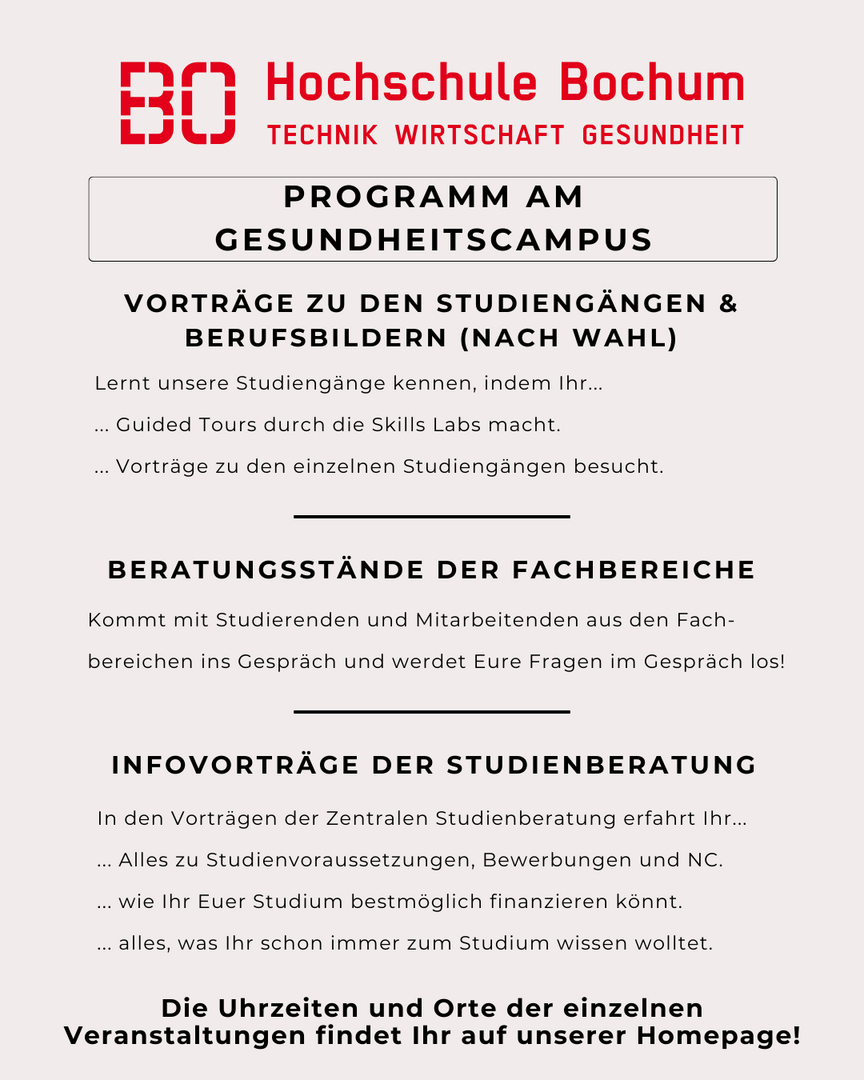 (Studien-) Interessierte erwartet ein vielfältiges Programm aus Vorträgen, Führungen, Infoständen und weiteren Kennenlernangeboten. Und neben den Fachbereichen steht auch die Zentrale Studienberatung den gesamten Tag für Fragen zur Verfügung.