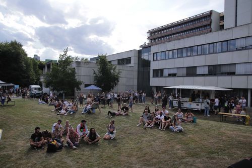 Nicht nur die Studierenden waren eingeladen, sondern auch die Mitarbeitenden aus der Verwaltung, Technik und Lehre - das liegt dem AStA immer sehr am Herzen! Das Angebot wurde auch von einigen - trotz Urlaubszeit – dankbar und gut gelaunt angenommen. Studierende und Professor*innen trafen sich in lockerer Atmosphäre. Das Fest hat auf jeden Fall Lust auf mehr gemacht – alle hoffen auf eine Wiederholung in 2023!