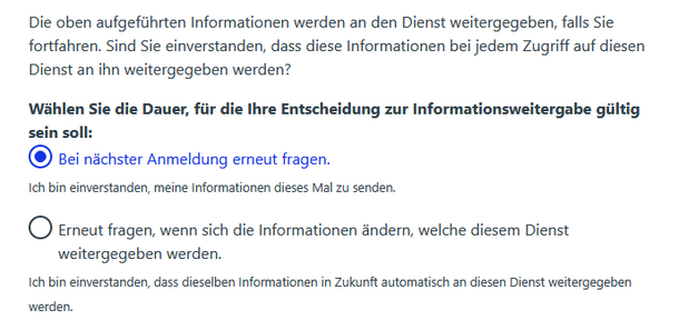 - Die zu übermittelnden Informationen anzeigen, damit ich die Weitergabe gegebenenfalls ablehnen kann.