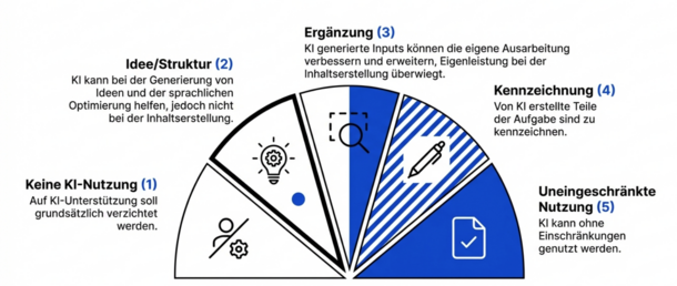 Er richtet sich an Lehrende und versteht sich als didaktische Empfehlung, nicht als starre Regel. Ziel ist es, einen gemeinsamen Rahmen für den sinnvollen Umgang mit KI in Studium und Lehre zu schaffen.