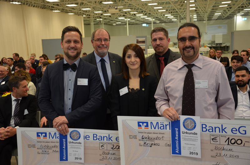 Die Hochschule Bochum hatte mit etwa 160 Gästen am 23. November 2019 gleich doppelten Grund zur Freude. Neben der diesjährigen Absolventenfeier der Verbundstudiengänge Wirtschaftsingenieurwesen (B.Sc.) und Technische Betriebswirtschaft (MBA) in der Blue Box wurde quasi „Silberne Hochzeit“ der Hochschule Bochum und der Fachhochschule Südwestfalen gefeiert: 1994 starteten nämlich die deutschlandweit ersten kooperativen Verbundstudiengänge nach dem Verbundstudienmodell. Das Angebot traf einen Nerv – mittlerweile gibt es 42 Verbundstudiengänge an 15 Hochschulen in Nordrhein-Westfalen.