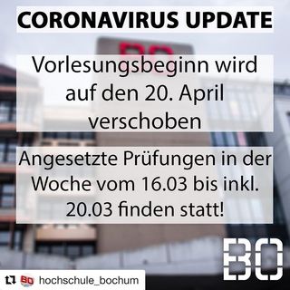 Ab Dienstag, dem 17.3. 2020 werden alle Prüfungen an der Hochschule Bochum abgesagt.