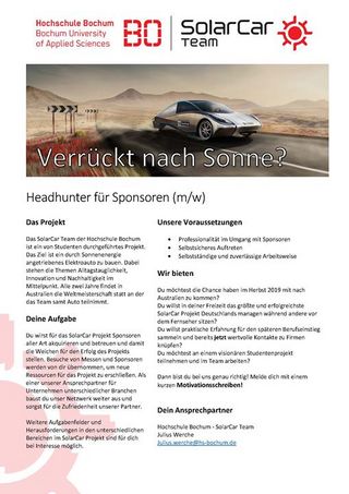 Das SolarCar Team der Hochschule Bochum ist ein von Studenten…