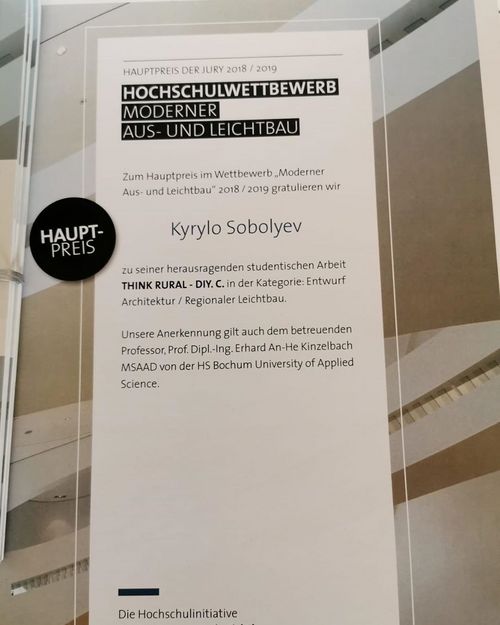 an Kyrylo Sobolyev. Seine Thesis SoSe 2019 Think Rural @professurkinzelbach erhält den HAUPTPREIS im Hochschulwettbewerb 2018/2019 der Hochschulinitiative Moderner Aus- und Leichtbau! Preisverleihung war gestern in Weimar auf dem Hochschultag. #wettbewerb #thesis #sose19 #thinkrural #kaffeewaschstation #uganda #diy #einfachbauen #thinklocal #bambus #konstruktion @hochschule_bochum @hsboarchitektur #hochschule ochum #fachbereicharchitektur #hsbo #fba @professurkinzelbach #prokin @korvinshrimp @hochschulinitiative
