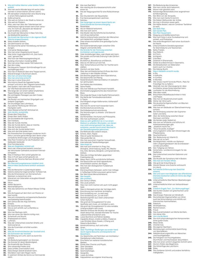 Der amerikanische Architekturkritiker Michael Sorkin gibt in seinem neusten Buch Architekten und Planern eine Liste an die Hand, ihr berufliches Wissen zu prüfen. Auszüge: