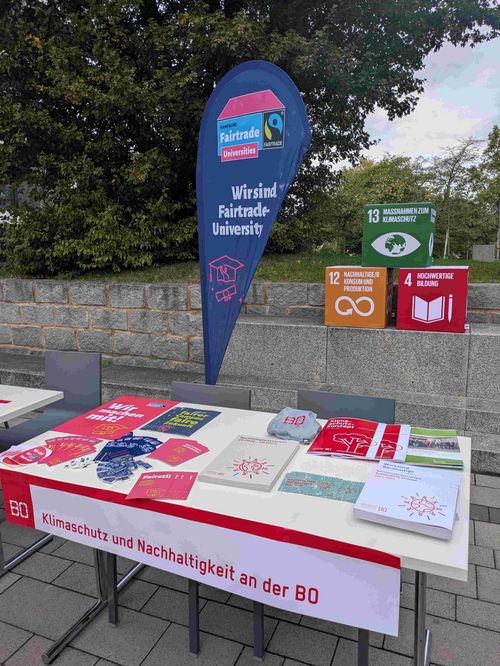 Zum Start des Wintersemesters 2025/26 war das Nachhaltigkeits- und Klimaschutzmanagement der Hochschule Bochum bei der Erstsemesterbegrüßung vertreten. Am Informationsstand konnten Studierende vielfältige Materialien entdecken – darunter den aktuellen Nachhaltigkeitsbericht, die Broschüre zur laufenden Ökoprofit-Auszeichnung und viele Informationen rund um die Fairtrade-University.