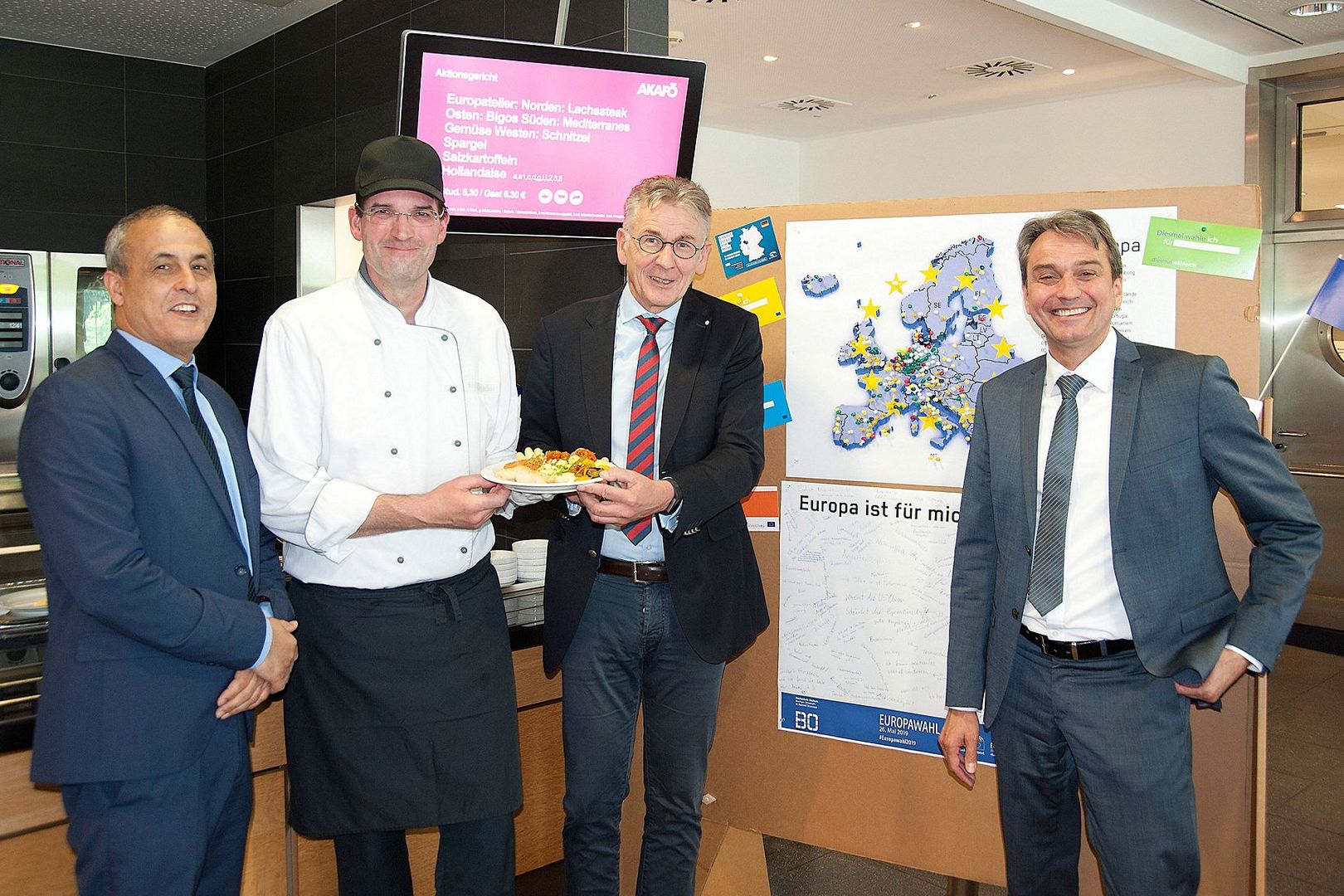 Mit einem „Europateller“ werben das Akademische Förderungswerk und die Hochschule Bochum für die Teilnahme an der Europawahl.