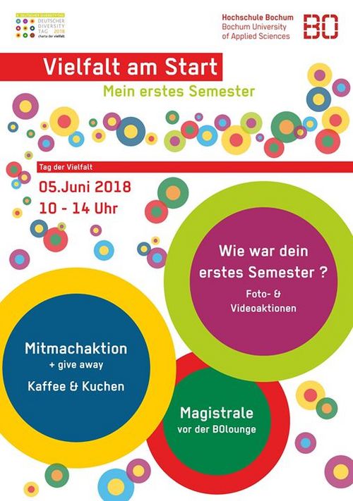 Mit dem Thema „Vielfalt am Start – Mein erstes Semester“ beteiligt sich die Hochschule Bochum beim 6. Diversity-Tag. Alle Studierenden sind herzlich eingeladen.
