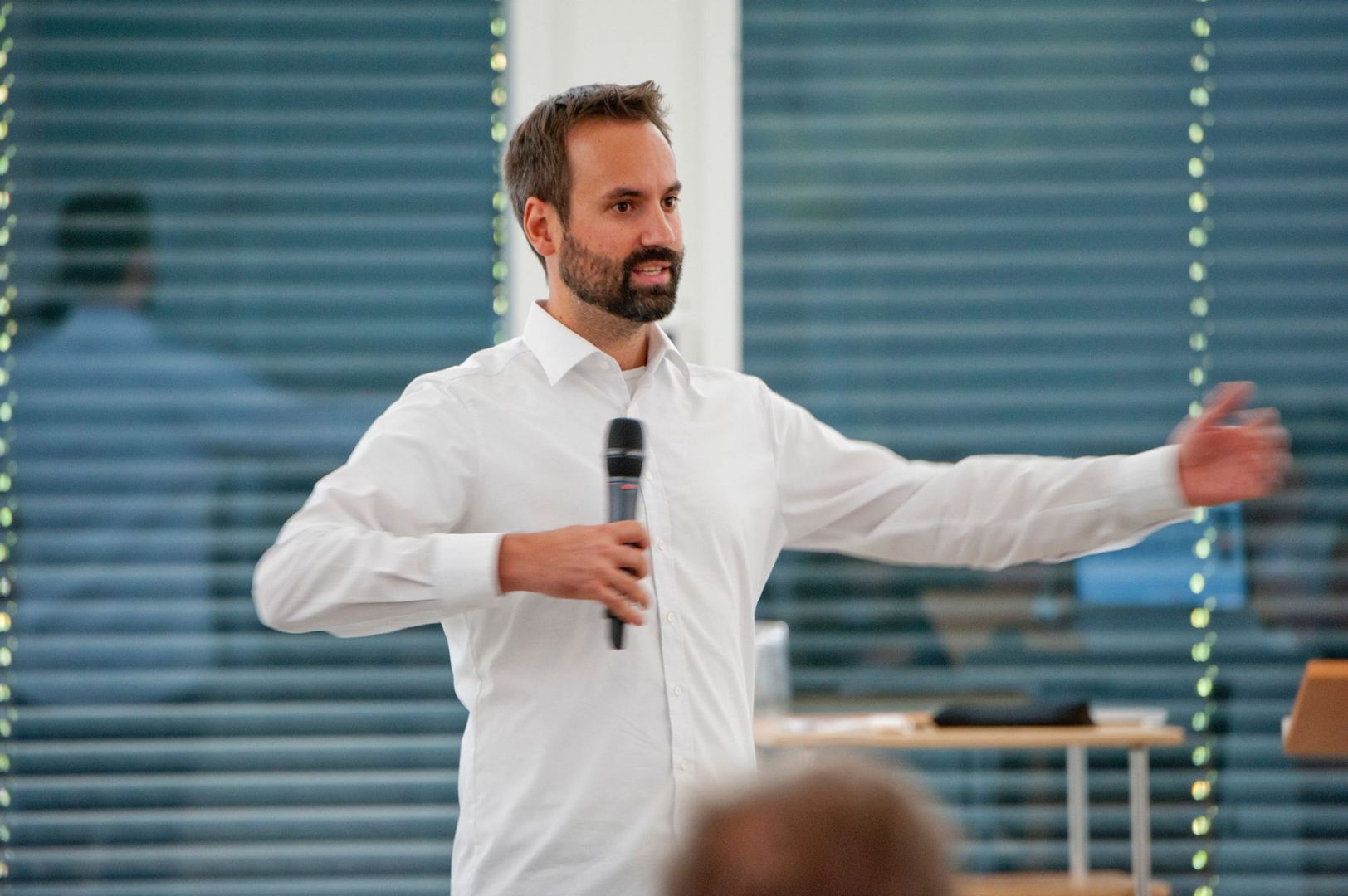 Bild: Dominik Kraatz, AMM-Absolvent und Start-up Gründer aus Bochum demonstriert die von ihm entwickelte interaktive Visualisierungslösung Inzept3D.