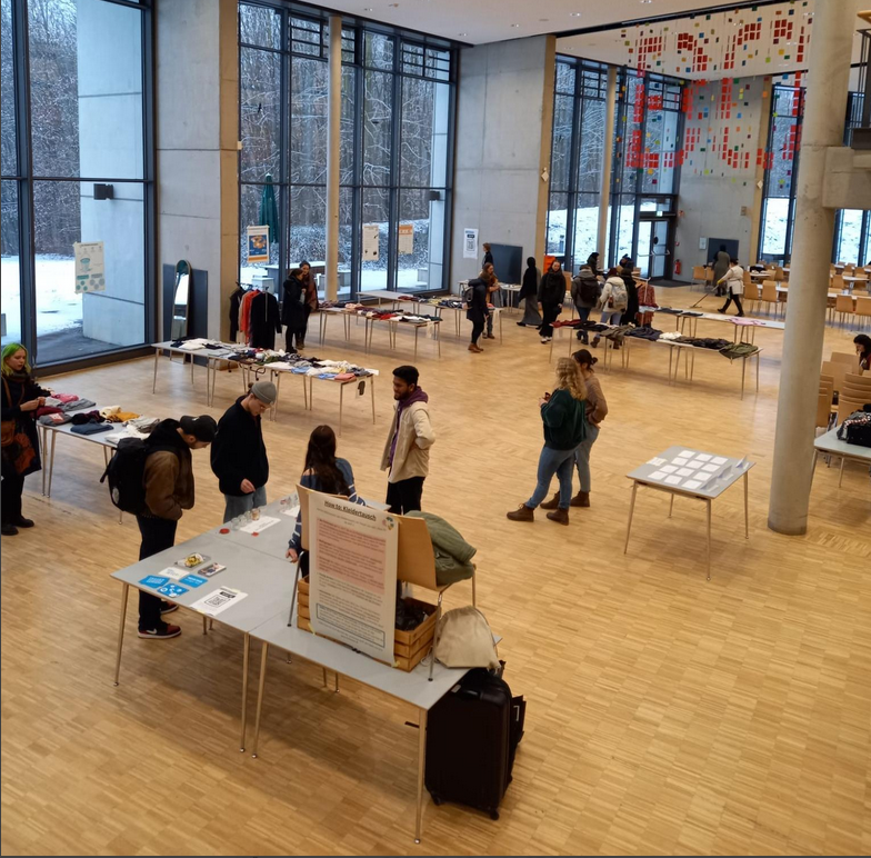 Am 17.01.24 fand in der Mensa der Hochschule Bochum eine Kleidertauschparty statt. Studierende des Lehrforschungsprojekts "Nachhaltige Hochschule Bochum - Strategie, Umsetzung, Vernetzung" organisierten eine Tauschbörse für Kleidungsstücke und luden Studierende wie Beschäftigte ein, aussortierte Kleidungsstücke mitzubringen oder nach neuen zu stöbern. Vor Ort gab es die Möglichkeit, sich über die Auswirkungen der Textilindustrie und die Themen Abfall und Abfallvermeidung zu informieren. Die Veranstaltung wurde gut angenommen und soll bald wiederholt werden!