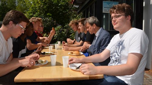 Vertieft wurden die ersten Kontakt anschließend in entspannter Atmosphäre beim Grillen. Es gab einen regen und lustigen Austausch zwischen den Mitarbeiter/innen der Hochschule und den neuen Azubis. Festgestellt wurde z.B., dass die Social-Media-Aktivitäten von Kanzler Hinsenkamp „ausbaufähig“ seien, da er lediglich ca. 10 Nachrichten täglich versende, während es bei den neuen Auszubildenden erheblich mehr sind.