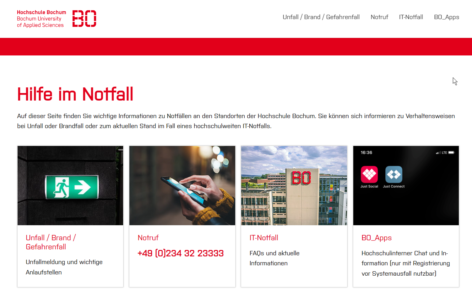 Die Seite notfall.hochschule-bochum.de ist online, das Befüllen mit Inhalten im Bereich „IT-Notfall“ erfolgt ab Anfang nächsten Jahres.