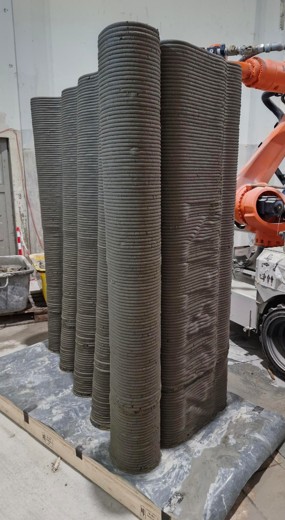Ziel des Vorhabens 3DLight_OnSite (2022-25) war die CO2-Einsparung im Bauwesen durch Entwicklung eines CO2-optimierten digitalisierten Workflows für die Fertigung multifunktionaler Leichtbauteile mit gradierten Bauteileigenschaften. Die Hauptinnovation lagauf der Einführung einer Leichtbauweise im Bauwesen durch Konzeption, Entwicklung und Erprobung der In-Situ Fertigung im Bereich additiver Fertigung. Es werden Materialien und digitale Planungsmethoden für individualisierte, multifunktionale Leichtbauteile entwickelt, die robotergestützt additiv gefertigt werden. Das Projekt schließt die Lücke zwischen grundlegender Forschung und industrieller Anwendung, indem die Ergebnisse anhand von Referenzbauteilen aus der Praxis erprobt und validiert werden.