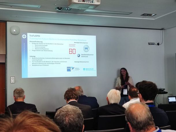 Aufgabe des Projekts TraFuSMS ist es, ein modulares Bildungskonzept zu entwickeln, das die bedarfsorientierte Aus- und Fortbildung von Fachkräften für die Energie- und Mobilitätswende ermöglicht. Im Mittelpunkt stehen drei Module für Fachkräfte aus Kfz-Betrieben und der Industrie sowie Mitarbeitende von Start-ups und kleineren Betrieben im Bereich nachhaltiger Mobilität: