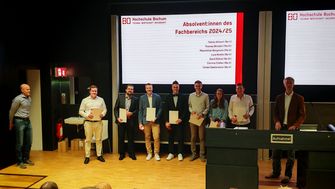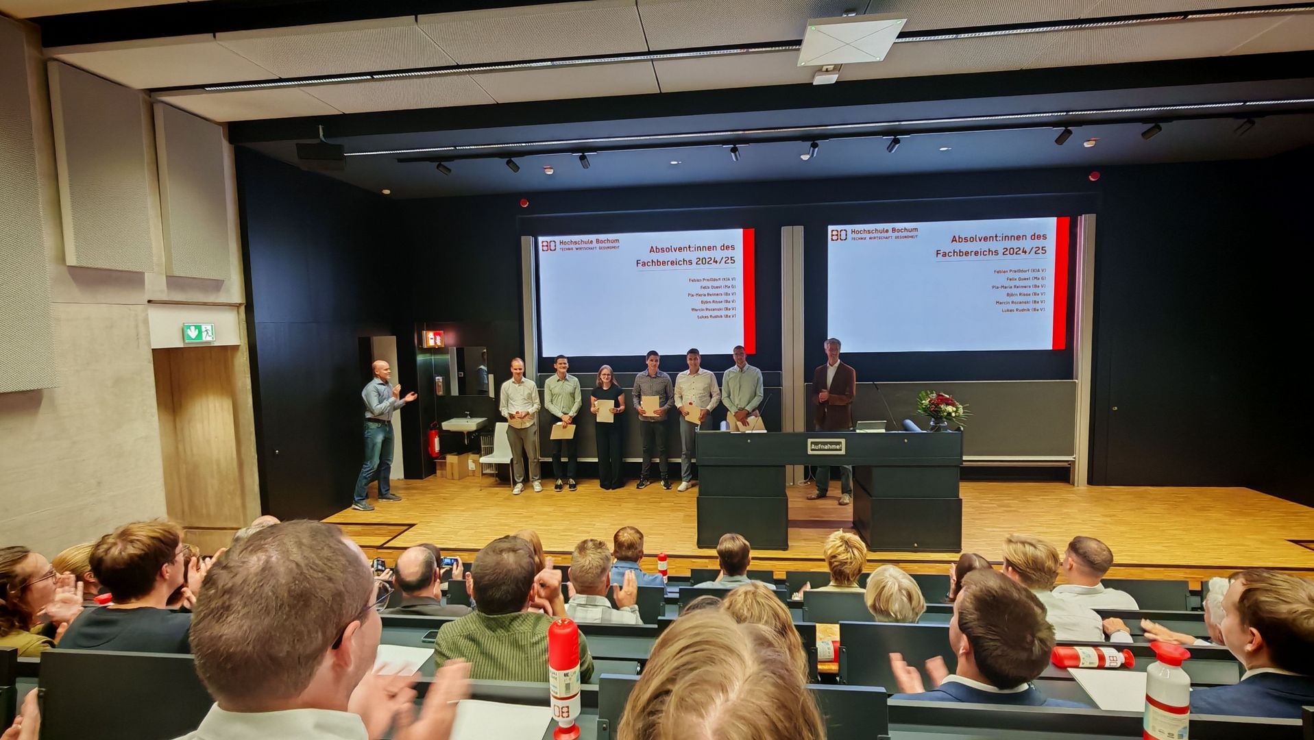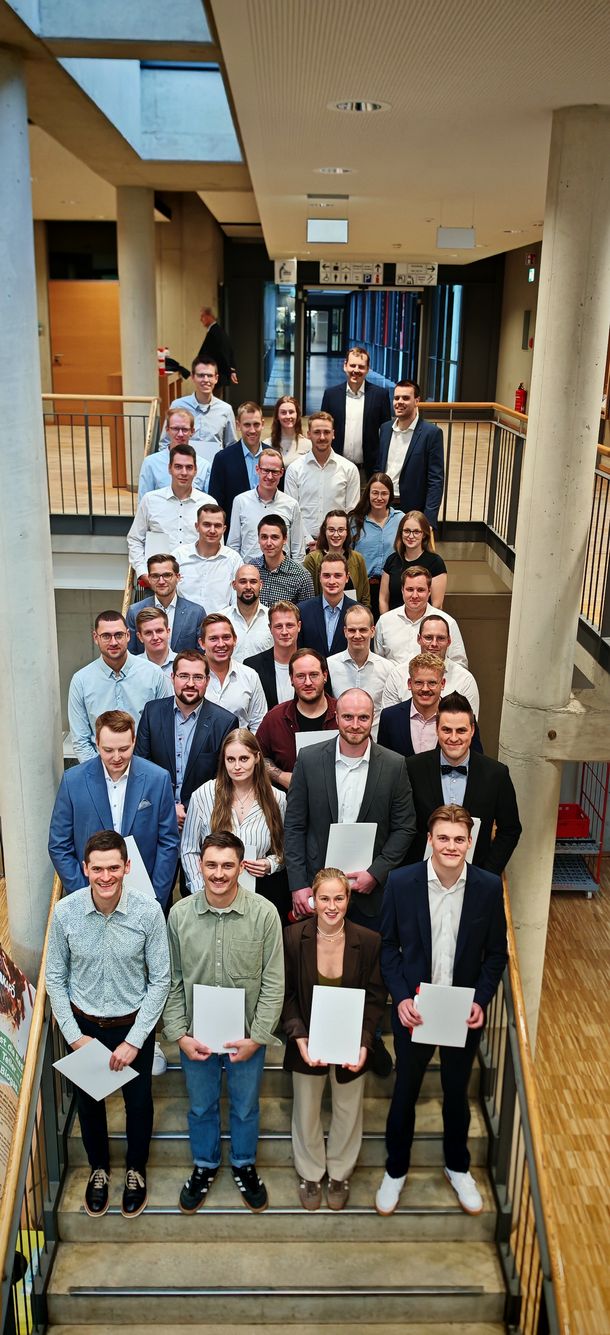 Am Freitag, den 26. September 2025, verwandelte sich der Fachbereich Geodäsie in Bochum in einen festlichen Treffpunkt: Rund 135 Gäste folgten der Einladung zur diesjährigen Absolvent:innenfeier. Unter ihnen waren 36 frischgebackene Absolvent:innen mit ihren Familien und Freund:innen, zahlreiche Professor:innen und Mitarbeitende des Fachbereichs sowie Vertreter der Berufsverbände.