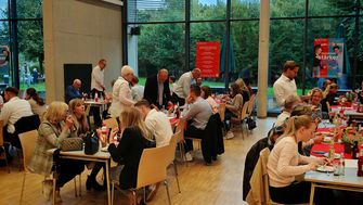 Nach dem offiziellen Programm ging die Feier nahtlos in einen geselligen Abend über. Bei Sektempfang und Fingerfood stand der Austausch im Mittelpunkt: Es wurde geplaudert, in Erinnerungen geschwelgt und neue Kontakte geknüpft. Das herbstlich dekorierte Buffet bot dabei eine Vielfalt an Köstlichkeiten – sowohl für Fleischliebhaber:innen als auch für Vegetarier:innen.