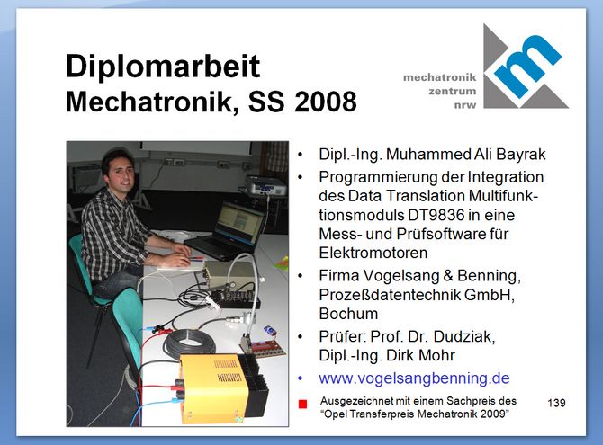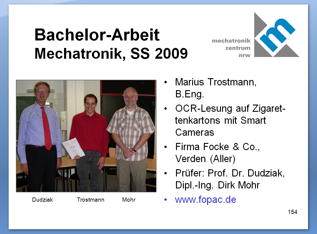 - Planung, Realisierung und Evaluierung der mechanischen und optischen Komponenten eines Industriellen