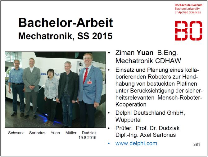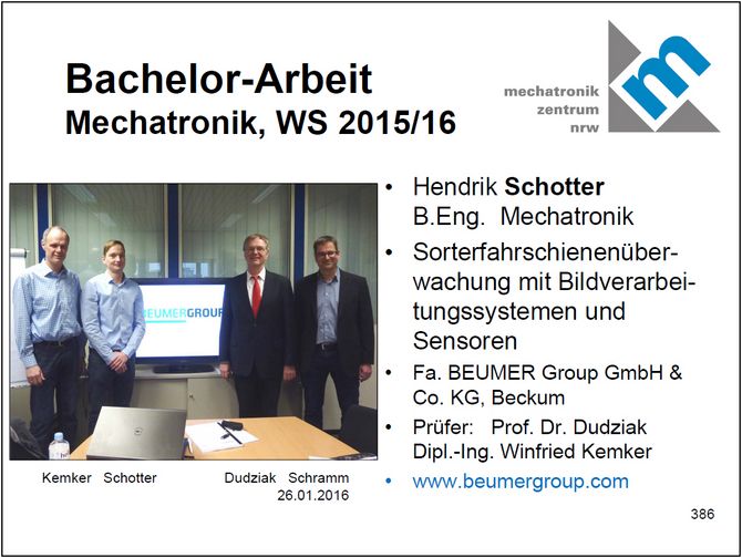 - Planung, Realisierung und Evaluierung der mechanischen und optischen Komponenten eines Industriellen