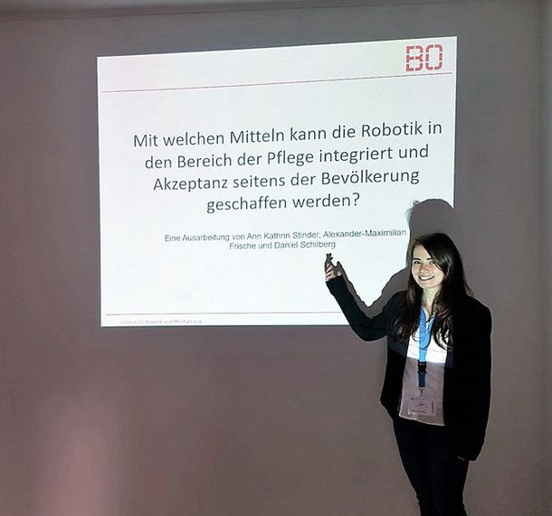 Ann Kathrin Stinder, Studentin der Nachhaltigen Entwicklung, stellte ihre Ergebnisse am 28.02.2019 in Dresden vor. In den zwei Semestern des Projekts war Robotik-Professor Dr. Daniel Schilberg aktiver Begleiter des Projekts. Im Sommer wird die Studie auch international präsentiert. Stinder wird dann auf der AHFE19 (10th International Conference on Applied Human Factors and Ergonomics) in Washington D.C. vortragen.