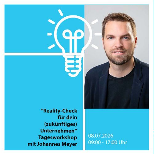 Der Workshop wird von Johannes Meyer, einem zertifizierten Gründungsberater (BQZ) und erfahrenen Format- und Produktentwickler, insbesondere in der Medienbranche, geleitet. Er unterstützt dich dabei, dein Geschäftsmodell aus verschiedenen Perspektiven zu hinterfragen und gezielt weiterzuentwickeln.