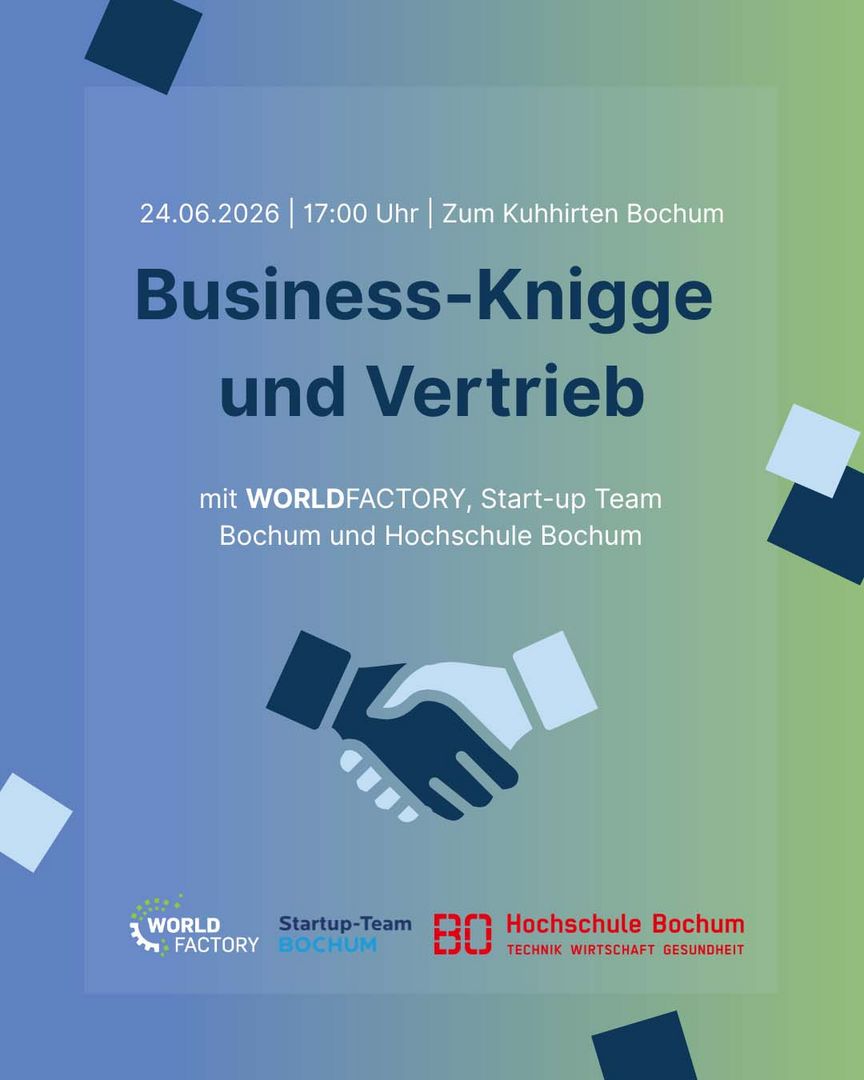 Der Workshop wird als gemeinsames Event der Hochschule Bochum, des Worldfactory Start-up Centers und des Startup-Team Bochum durchgeführt.