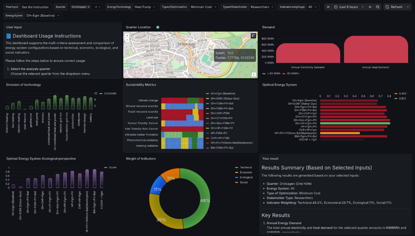 Urbane Quartiere spielen eine Schlüsselrolle für das Erreichen der nationalen Klimaziele und der angestrebten Treibhausgasneutralität bis 2045. Gleichzeitig stehen Kommunen und Projektverantwortliche vor komplexen Herausforderungen: vielfältige Zielkonflikte, zahlreiche beteiligte Akteure sowie fehlende integrierte Planungs- und Entscheidungswerkzeuge erschweren die Umsetzung nachhaltiger Energie- und Mobilitätskonzepte auf Quartiersebene.