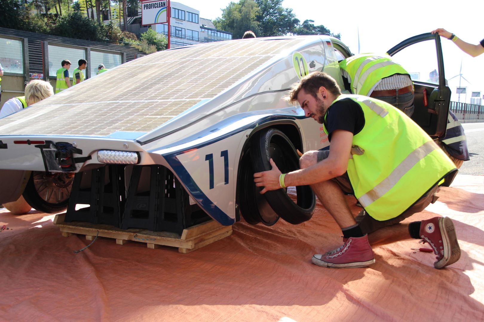 Das Scrutineering verläuft für die deutschen Mannschaften derweil sehr erfolgreich, am Ende bekommt jeder Sonnenwagen seine Startnummer und den offiziellen ESC-Sticker aufgeklebt.