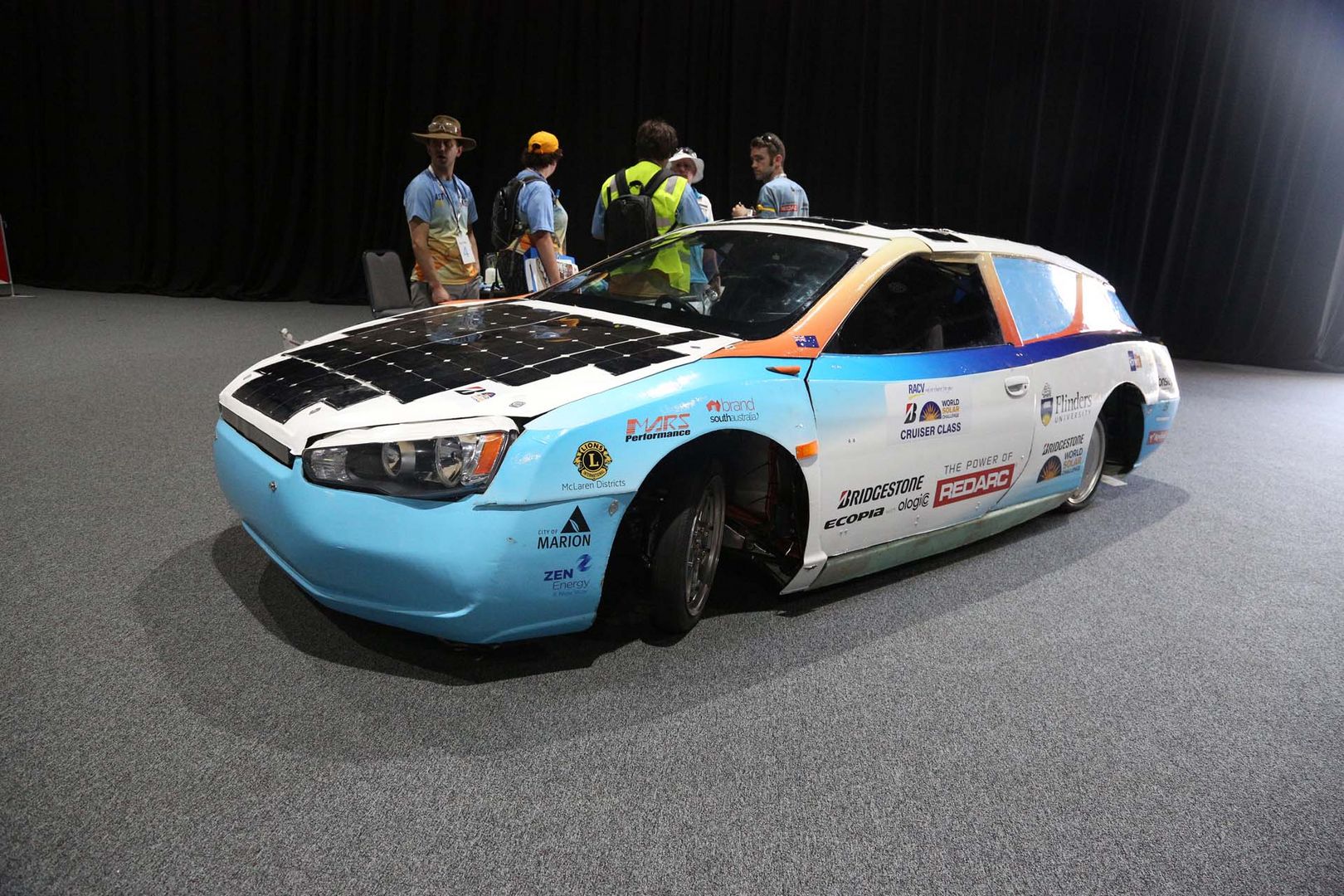 Ähnliche Fortschritte zeigen die Kollegen aus Sydney vom Sunswift-Team. Mit viel Phantasie konnte man beim letzten Mal erkennen, wie das Auto hätte werden können. In diesem Jahr glänzt eine polierte Carbon-Oberfläche, im Innenraum leuchtet ein elegantes Fahrerdisplay.