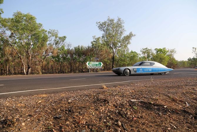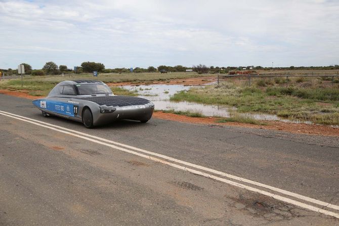 Zwei laufende Motoren reichen für den Race Track und man muss ja auch nur zwei Runden fahren und danach noch Stabilitäts- und Bremstest bestehen. Wenn das geschafft ist, darf man mitfahren bei der Bridgestone World Solar Challenge 2017.