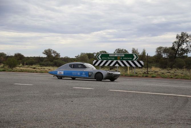 Ähnliche Fortschritte zeigen die Kollegen aus Sydney vom Sunswift-Team. Mit viel Phantasie konnte man beim letzten Mal erkennen, wie das Auto hätte werden können. In diesem Jahr glänzt eine polierte Carbon-Oberfläche, im Innenraum leuchtet ein elegantes Fahrerdisplay.