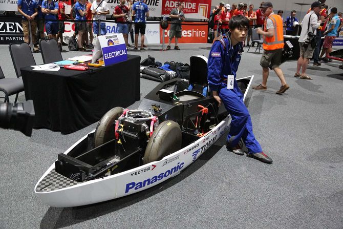 Da gibt es lange, flache, monolithische Rennpfeile wie die von Michigan/USA oder Tokai/Japan. Auf der anderen Seite die Katamarane wie der des amtierenden Weltmeisters Nuna/Holland oder auch der des deutschen Teams in dieser Klasse aus Aachen. Daneben finden sich noch Tropfendesigns mit aufgesetzter sehr dünner Solarfläche. Kokaguin aus Japan gehört zu dieser Gruppe. Das Katamarandesign hat sich bewährt, bei allen anderen Konstruktionen darf man auf die Effizienz, vor allem aber auf die Seitenwindempfindlichkeit gespannt sein. Der Seitenwind im Süden von Australien war schon öfter Ursache für Unfälle im Wettbewerb.