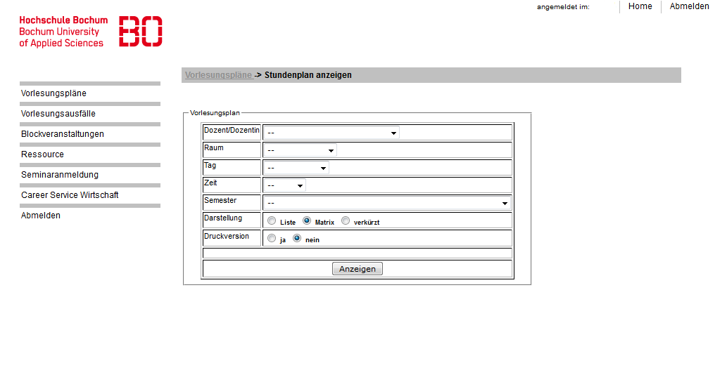 - Stundenpläne für die einzelnen Semester