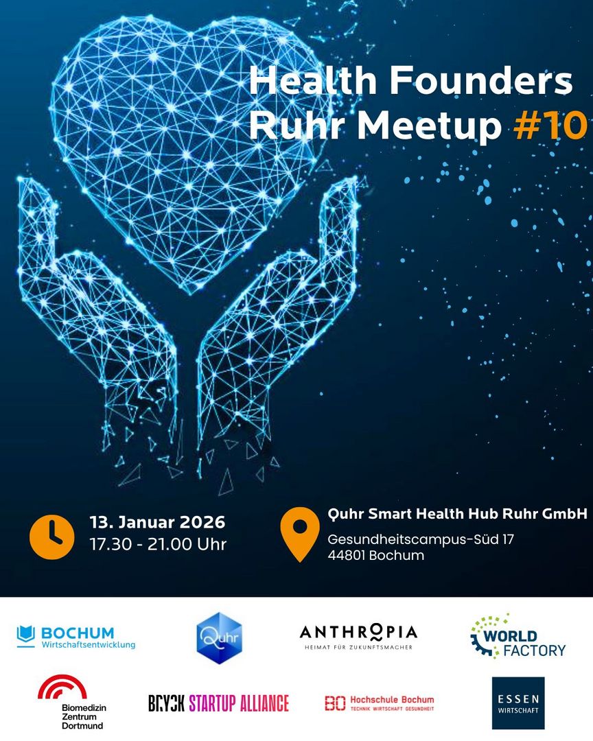 Das Health Founder Ruhr Meetup geht in die nächste Runde und bringt die Health-Start-up-Community aus dem gesamten Ruhrgebiet und NRW zusammen. Egal, ob du gerade erst über eine Gründung nachdenkst, eine Idee entwickelst oder bereits dein eigenes Start-up aufgebaut hast: Hier triffst du Menschen, die dieselbe Vision teilen.