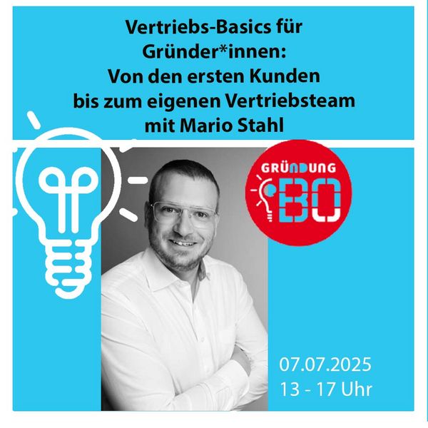 Sie haben ein tolles Produkt oder eine innovative Dienstleistung, aber keine Erfahrung im Vertrieb. Am Anfang muss man häufig alles selbst übernehmen. Doch wie? In diesem praxisnahen Workshop mit Mario Stahl bekommst du konkrete Antworten und eine klare Strategie.
