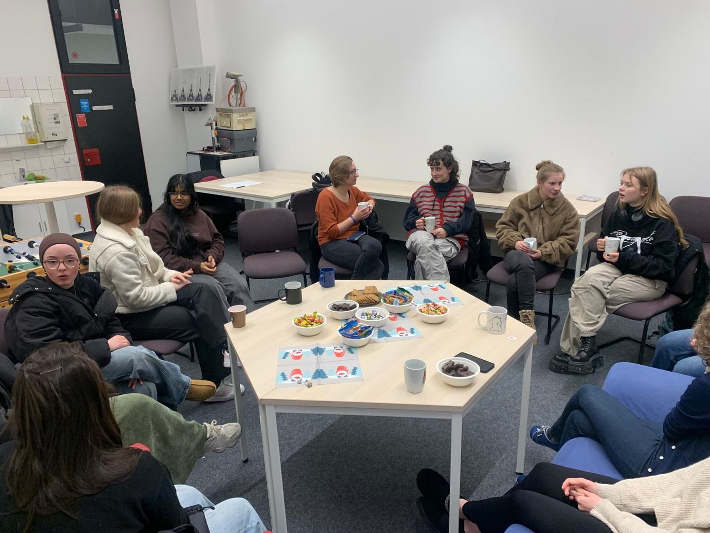 Am Mittwoch, den 26.11.2025 war es wieder so weit: Unser Stammtisch im Wintersemester fand statt! Passend zur Jahreszeit haben wir es uns bei Plätzchen, Tee und Kinderpunsch gemütlich gemacht und die Weihnachtsmusik im Hintergrund sorgte sofort für die passende Stimmung. Schon zu Beginn entstanden lebhafte und inspirierende Gespräche.